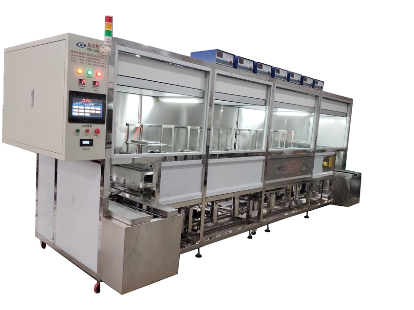 功能光學薄膜超聲波清洗機深圳威固特VGT-1009FH光學超聲波清洗機,設備共有10個功能槽,配置有噴淋系統、循環過濾系統、自動恒溫系統拋動系統、超聲波清洗系統、拋動系統、頂部框架系統、熱風烘干系統(百級FFU)、定時系統等。